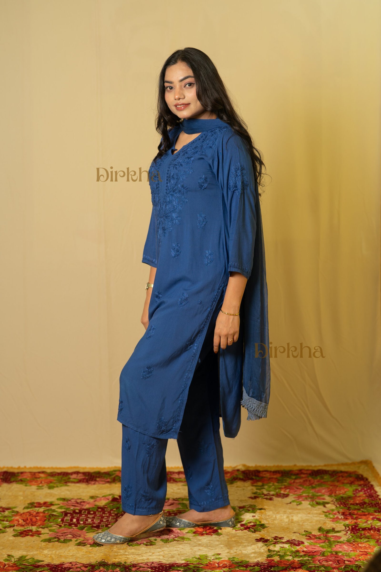 Dirkha Ankita Chikankari Soft Rayon Navy Blue Kurta Set With Duppata