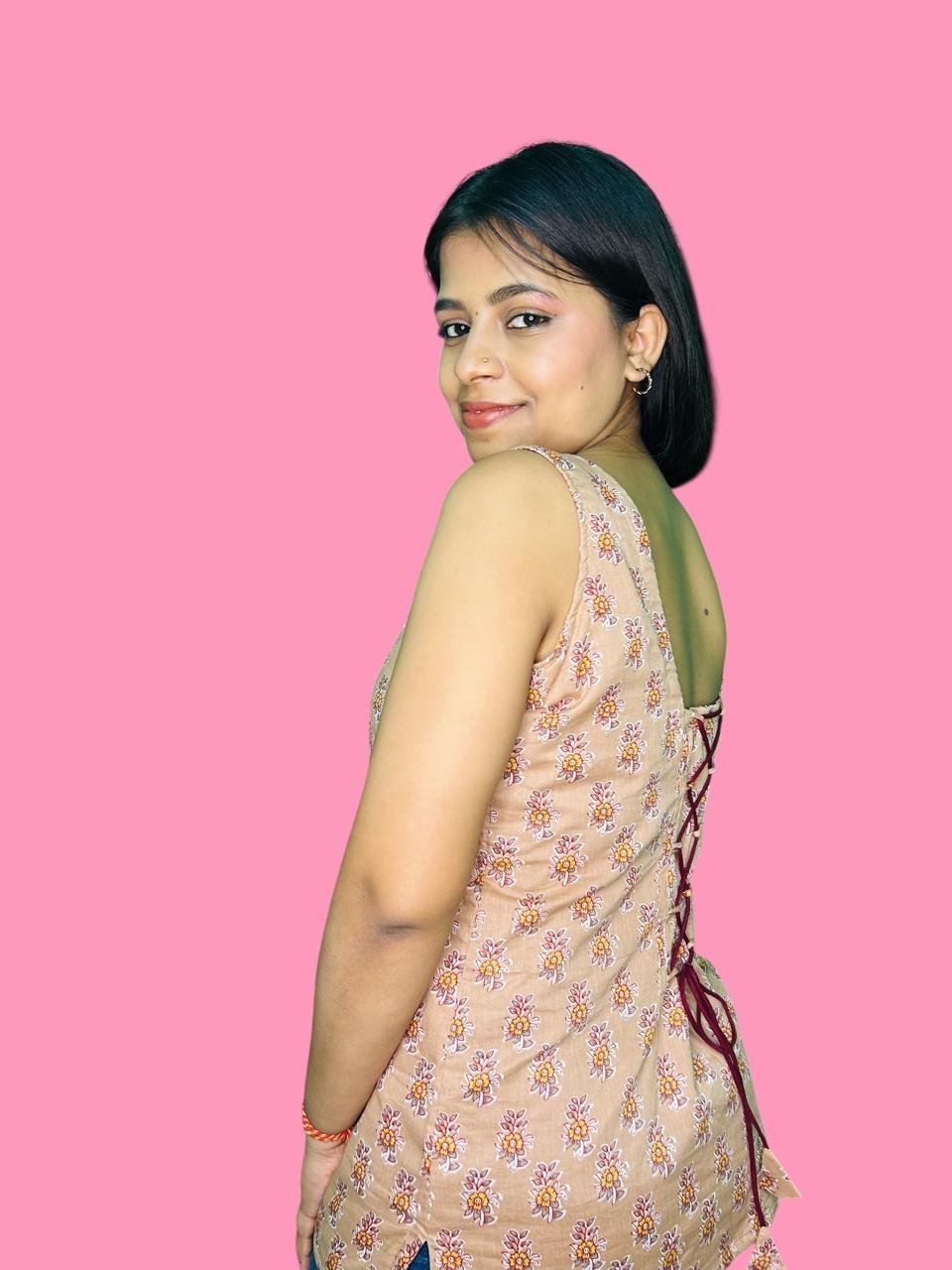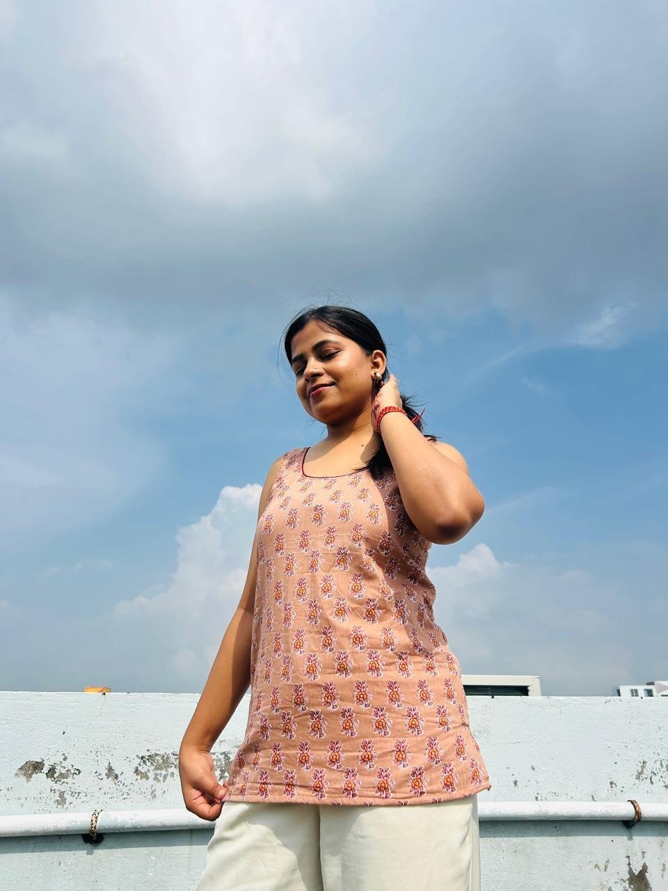 Rekha – Cotton Short Printed Kurti Peach