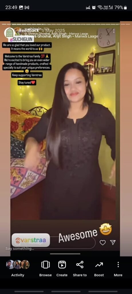 Very elegant and classy chikankari. Fabric is breathable and comfortable. Delivery was on time and packaging was good.